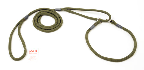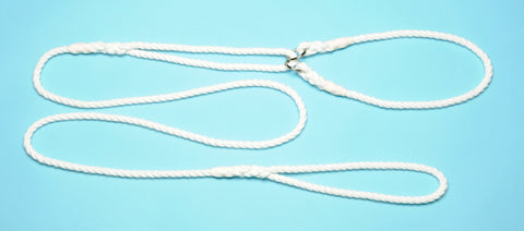 6mm Diameter x 1.5M Rope Slip Lead with Swivel - With Leather Stop - Brass Fittings - Code 057B